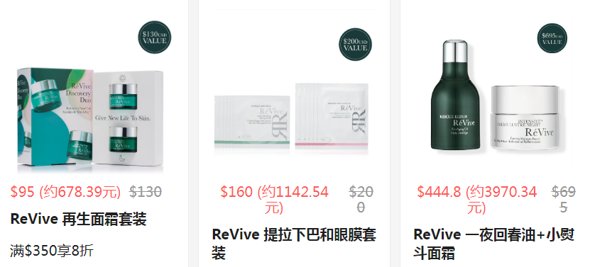 Revive 现有 全场护肤热卖 满$350享8折 全场满$250赠6件礼。