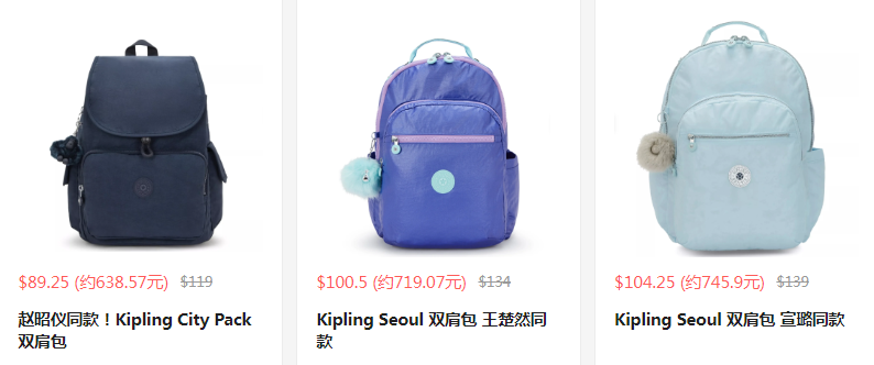 Kipling 现有 双肩包一律7.5折 限时特卖。 需要使用优惠码:BOOK。 优惠随时可能失效。
