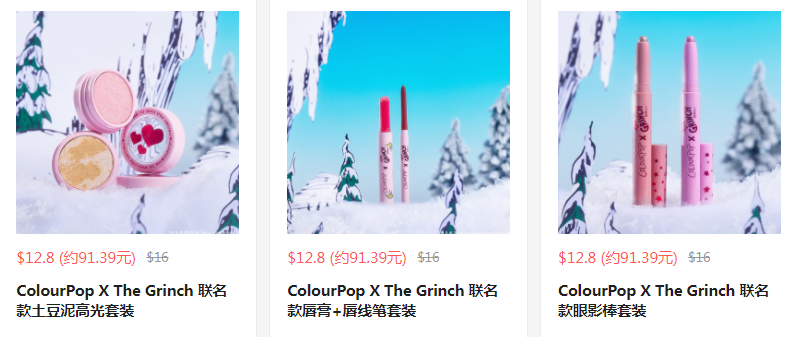 ColourPop 现有 The Grinch《鬼精灵》联名系列上新热卖。 满$60额外8折,需要使用优惠码:20OFF60。 优惠随时可能失效。