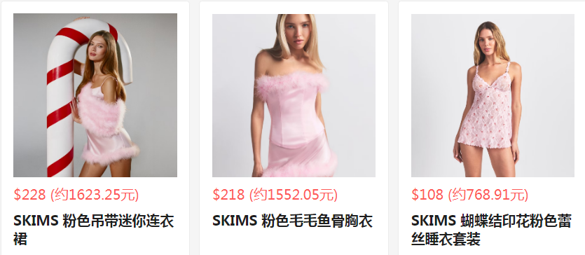 SKIMS 现有 圣诞系列上新!粉色吊带连衣裙$228 新人8.5折。