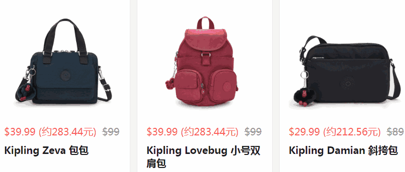Kipling 现有 年终大促开启,$19.99起 限时免邮 斜挎包$19起。