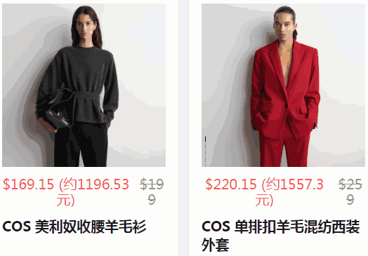 COS 现有 秋冬上新 精选正价商品 正价无门槛8.5折。