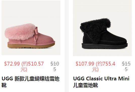 UGG US 现有 折扣区童鞋热卖!新款蝴蝶结鞋参加 低至4折。