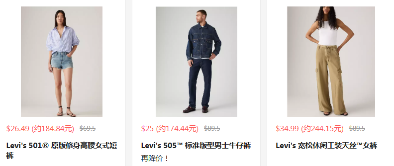 Levi's 现有 季末清仓大甩卖 入直筒牛仔裤、短裤 低至4折+额外5折。 无需使用优惠码。 有效期至北京时间 2026年01月23日13点59分。