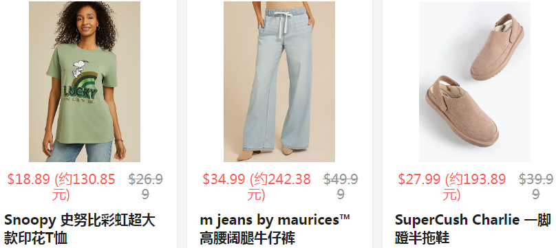 maurices 现有 限时闪促!精选正价新款印花T恤、m jeans by maurices™牛仔裤、鞋子等 无门槛7折。