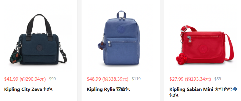Kipling 现有 精选包袋热卖 额外7折 限时折上折。 无需使用优惠码。 优惠随时可能失效。