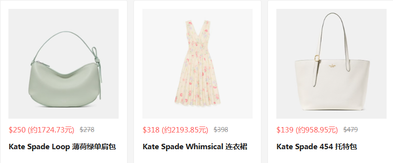kate spade 现有 包袋、服配饰热卖。 折扣区精选低至5折。 无需使用优惠码。 优惠随时可能失效。