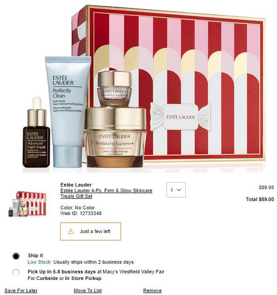 梅西百货这款Estée Lauder Firm & Glow 智妍4件套,价值$153,售价$89;美国境内满$25免邮;》》直达链接