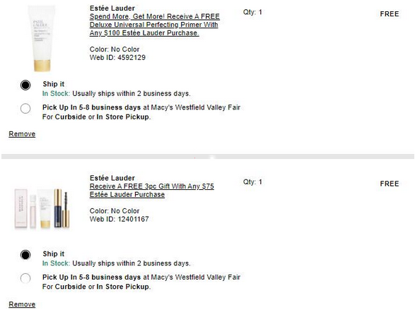 另外雅诗兰黛订单满$75送护肤3件套,满$125送妆前。