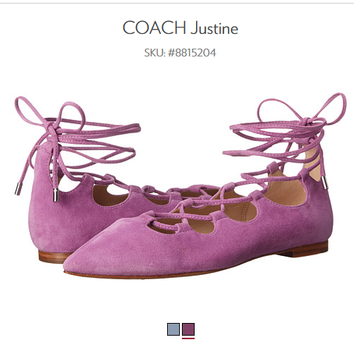 6pm这款COACH蔻驰Justine女士真皮绑带平底鞋特价$69.99,两色可选,尺码齐全。喜欢的可以由美淘转运帮忙带回,立即购买>>>