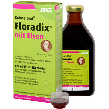 这款德国Salus Floradix Iron 铁元草本滋补液是全球最受欢迎补血圣品,强势占据国外65%的补铁市场,世界上4亿女性首选,吸收率高达98%。纯天然草本配方,这款绿色版本是在德国药房出售的,需要医生处方购买的,红色版本是在德国有机超市出售。补铁补血,有效改善缺铁性贫血,对睡眠质量不好,月经不调、肤色黯淡、手脚冰凉都有显著的改善作用。一般人均可食用,尤其适合妇女和孕妇。