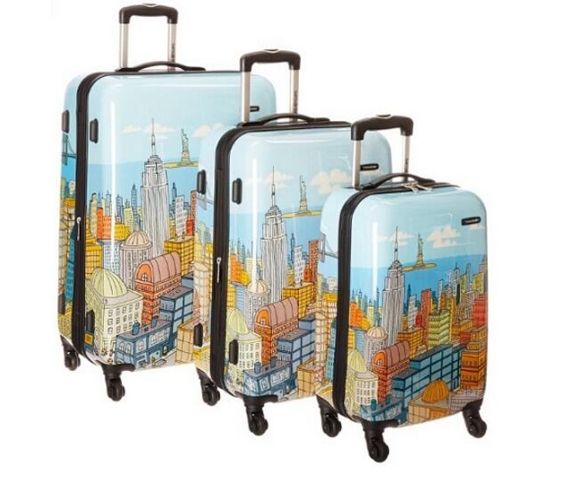 Samsonite CityScapes NYC 3 Piece Set 20", 24", 28" Premium Spinner Luggage Set新秀丽硬壳拉杆箱,包括20+24+28寸拉杆箱共计三件,属于城市系列,拉杆箱上印有扭腰的街景,比普通纯色的拉杆箱更显生动活泼,增加旅途中的乐趣。拉杆箱材质为30%ABS+70%PC,轻量并且坚固,带TSA海关锁 ,内有交叉绑带, 底部4个360度万向轮可以直接在地上推行,比拖动更为省力。