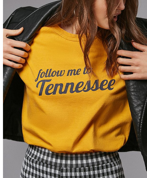 Urban Outfitters US 现有 Follow Me To Tennessee 纯棉字母T恤 热卖,原价$29,现特价$21.75(约143元),无需使用优惠码,加入购物车折扣自动显示,优惠随时可能失效,美国境内满$50免运费。