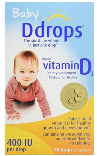 Baby Ddrops, 哺乳宝宝专用。亚马逊四星半好评!维生素D是健康成长的保证,特别是对骨骼的正常发育有至关重要的作用。 Baby Ddrops是从植物中提取的纯天然维生素D,无味无臭,不含任何防腐剂,未添加人工香精、色素。无小麦、无麸质,不含大豆,玉米,糖,牛奶和花生。用法:把Ddrops瓶盖打开,把瓶子完全倒过来、瓶口朝下,保持大约1-2秒钟(特殊瓶口设计,通常先出来的滴液会倒流回瓶子,再出来的滴液才会形 成一整滴滴下来),将一滴(含量400IU)维生素D滴在安抚奶嘴或妈妈乳头上,让宝宝吮奶嘴或乳头30秒种以上即可。爱淘转运美国运费特惠低至6+3.6$每磅,日本船运95折、EMS96折,澳洲奶粉低至45/KG,各国有包税路线哦!