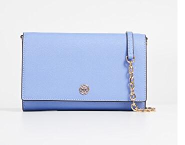 Shopbop 现有 Tory Burch Robinson Chain Wallet 蓝色链条小包,原价$298,现特价$208.6(约1447元),优惠随时可能失效,美国境内免运费。